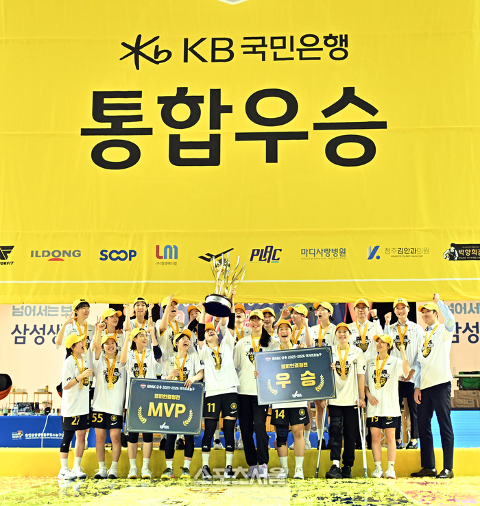 • [포토]우승 트로피 들어 올리는 KB스타즈