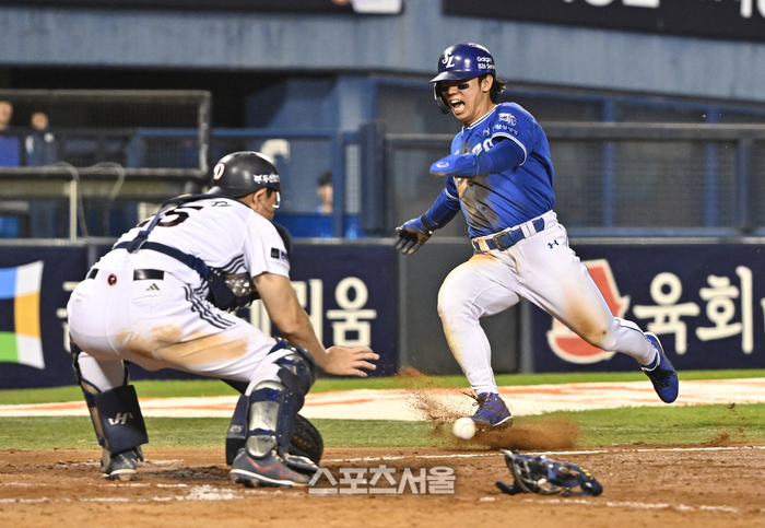 • [포토]홈으로 쇄도하는 삼성 김성윤