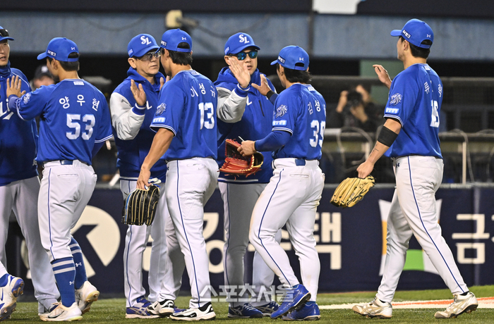• [포토]7연패 탈출 하이파이브 나누는 삼성 박진만 감독